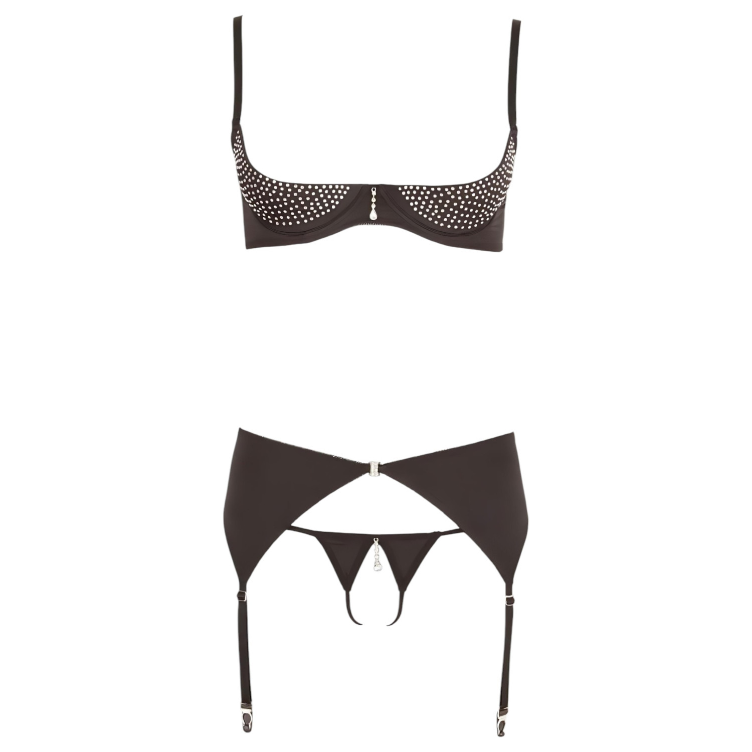 Abierta Fina - sädelev kivikestega pesukomplekt (must) - 85C/L