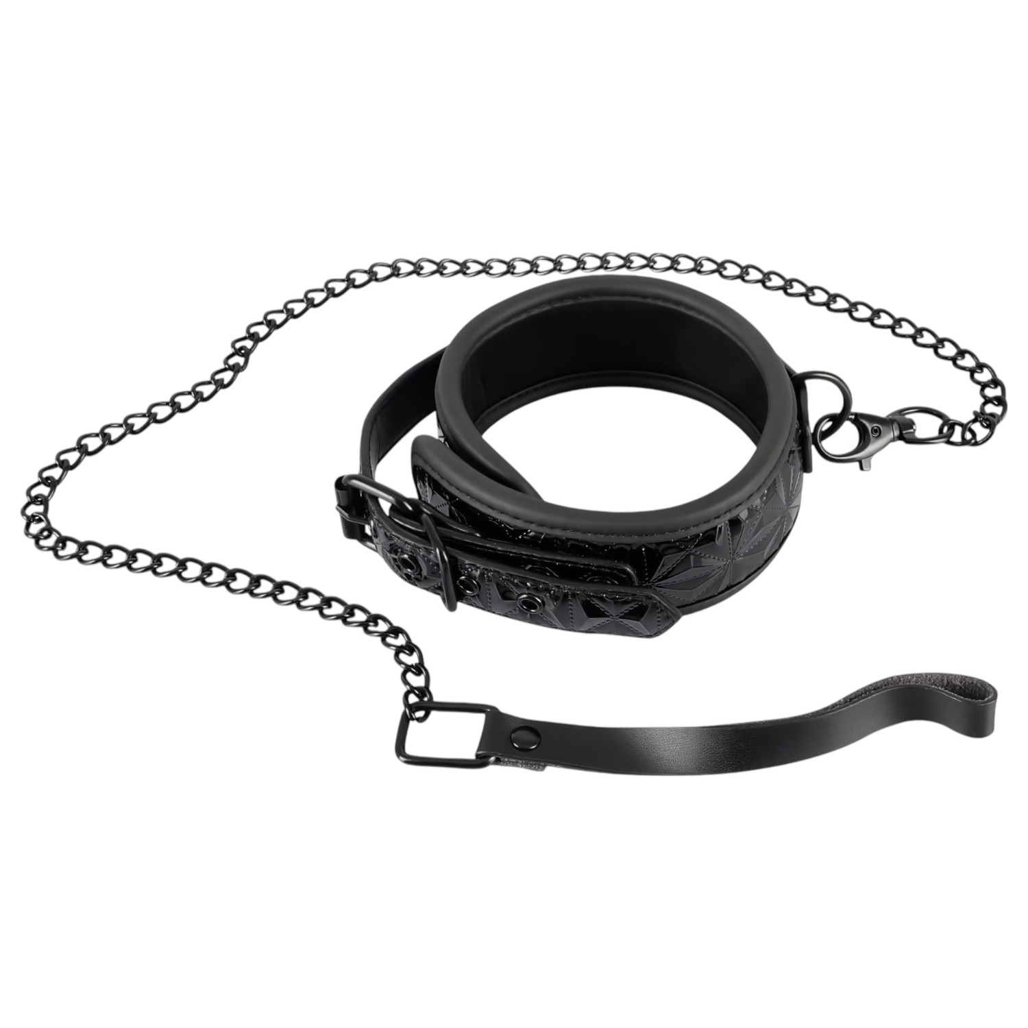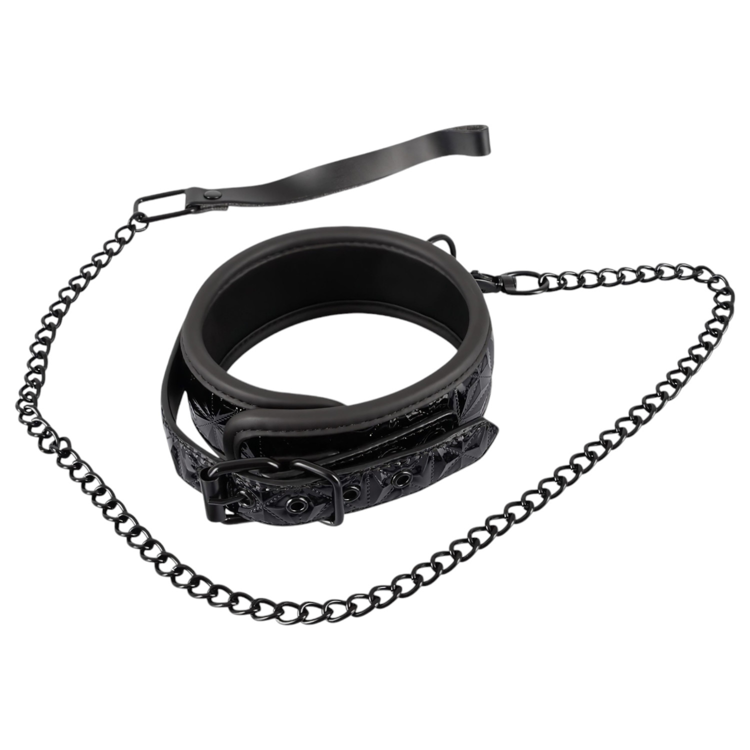 Tõsta oma domineerivate ja alistuvate mängude tase uuele kõrgusele selle elegantse, teemantmustrilise, pehmendusega kaelarihma ja stiilse ketist rihmaga.