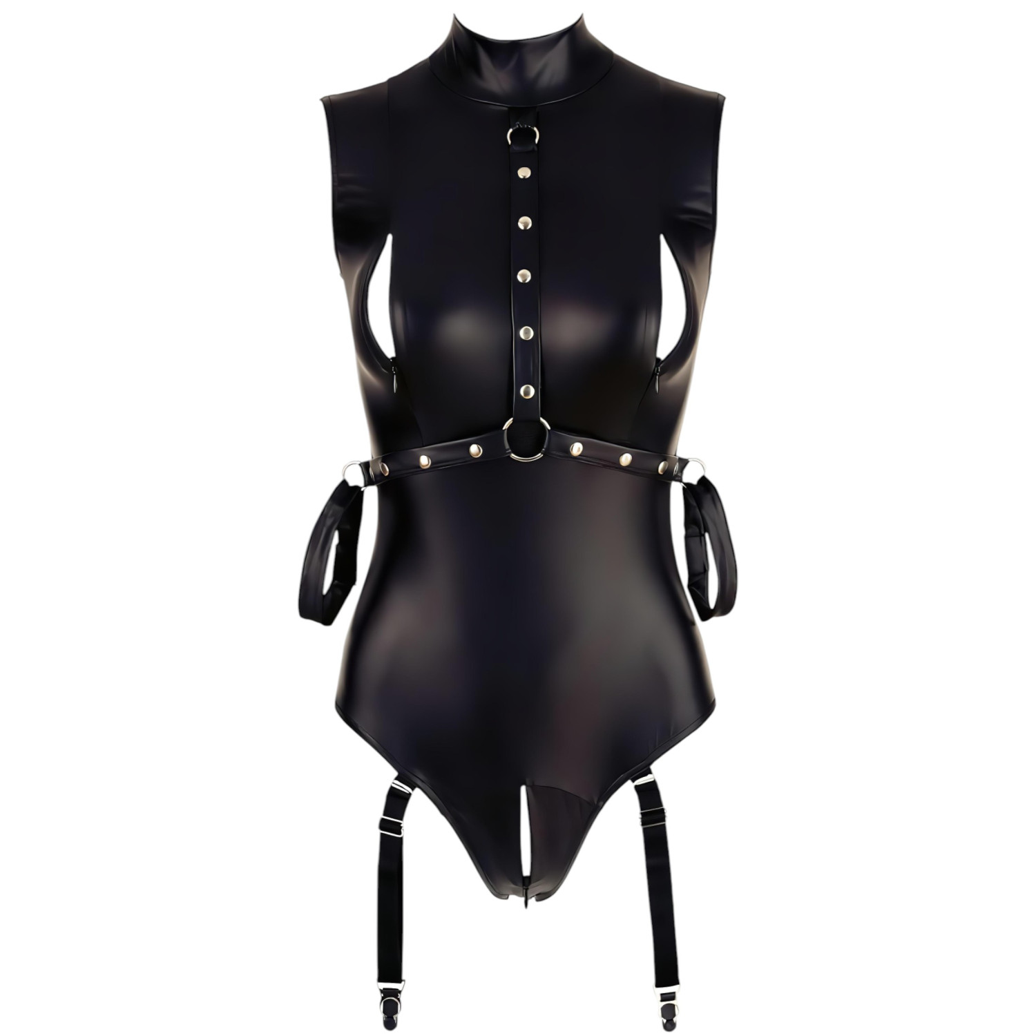 • 1 läikiv, nahaimitatsiooniga sukahoidjaga body sisseõmmeldud käerauaga