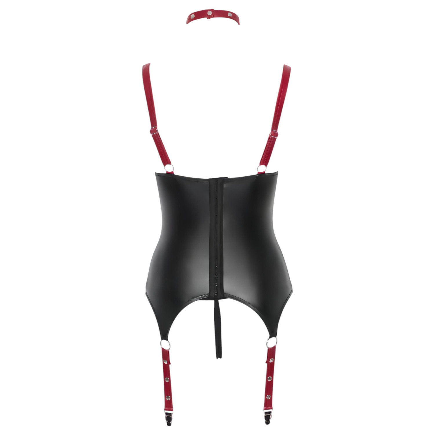 Kihvtavad punased rihmad, läikiv must materjal ja needitud aksessuaarid - see pesukomplekt toob ideaalsesse tasakaalu ahvatluse ja domineerimise.