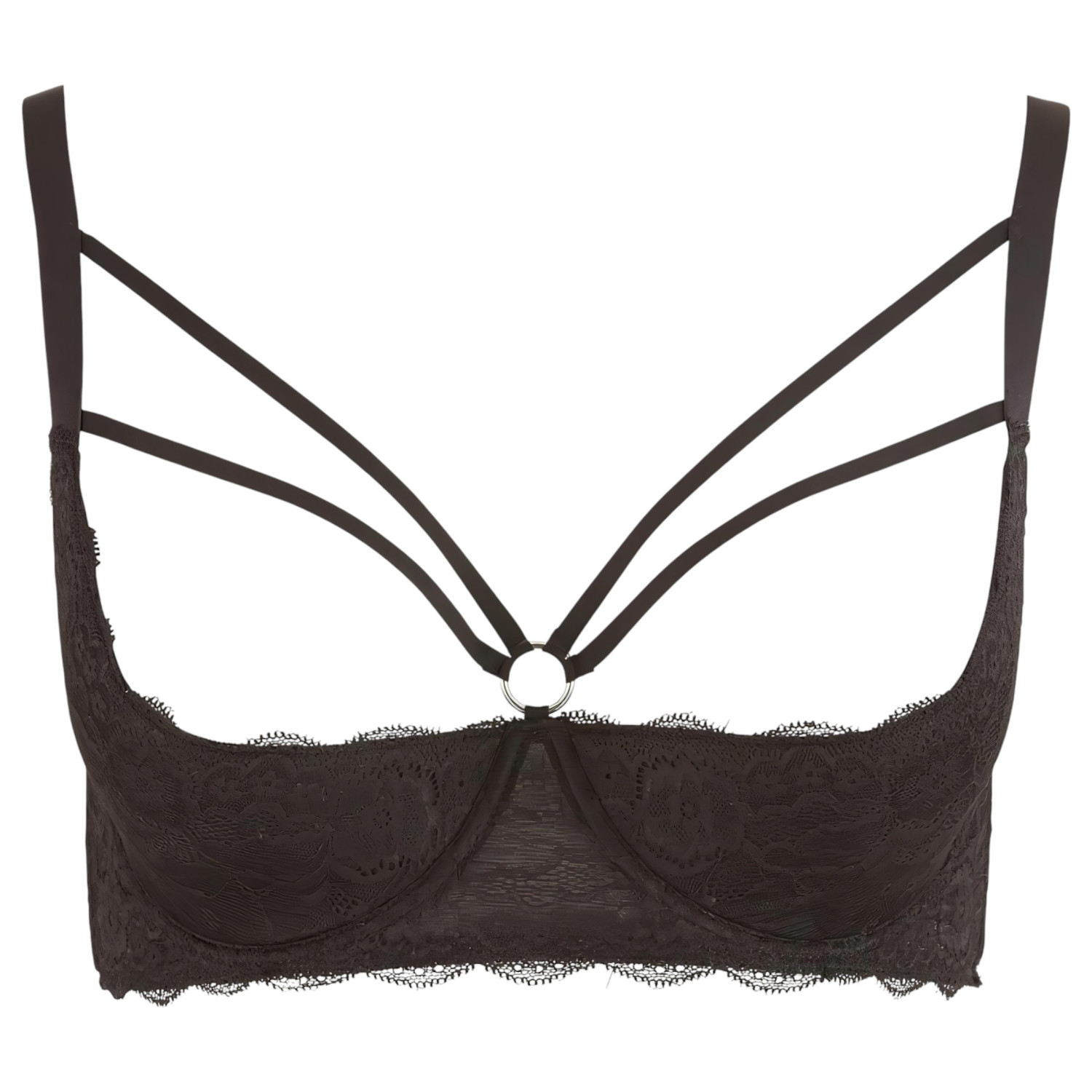 Cottelli Plus Size - rihmade ja rõngastega rinnahoidja (must)
