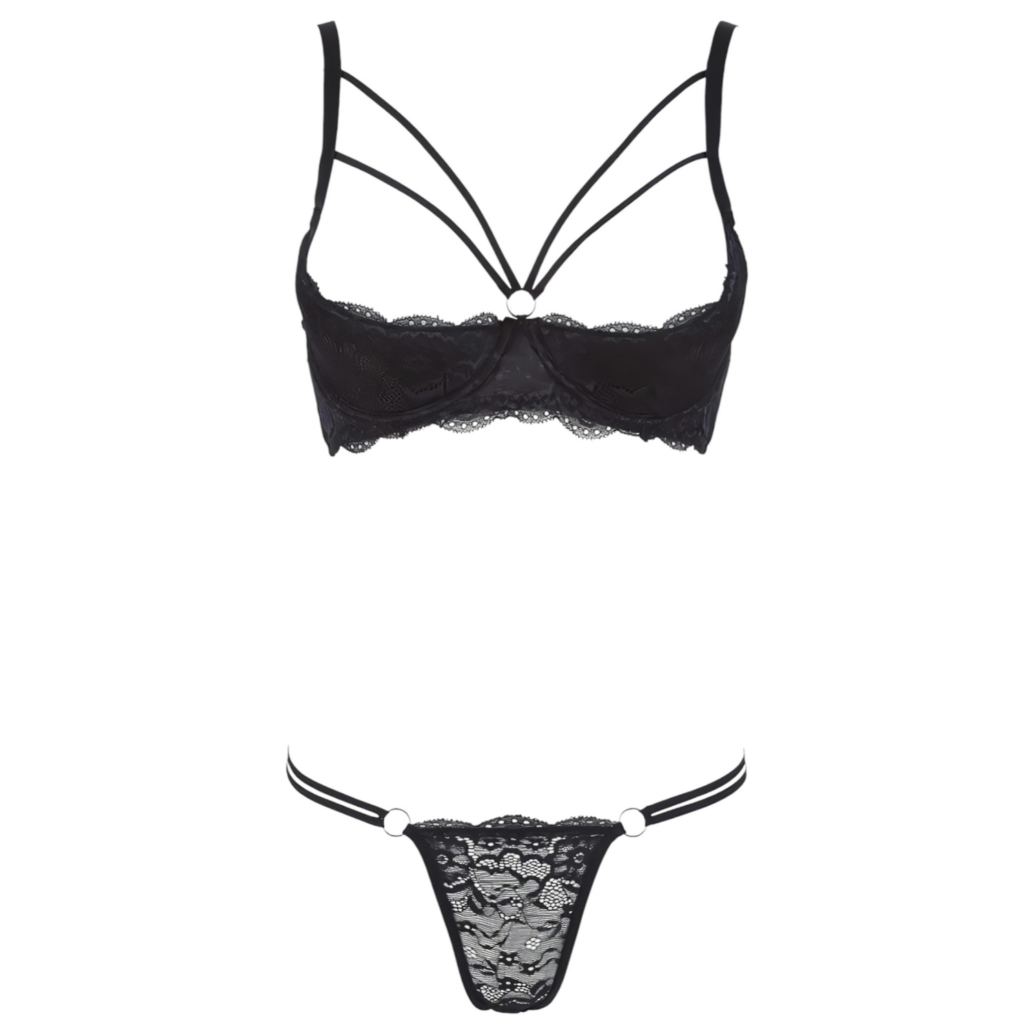 Cottelli - rihmade ja rõngastega rinnahoidja ning stringid (must) - 75C/S