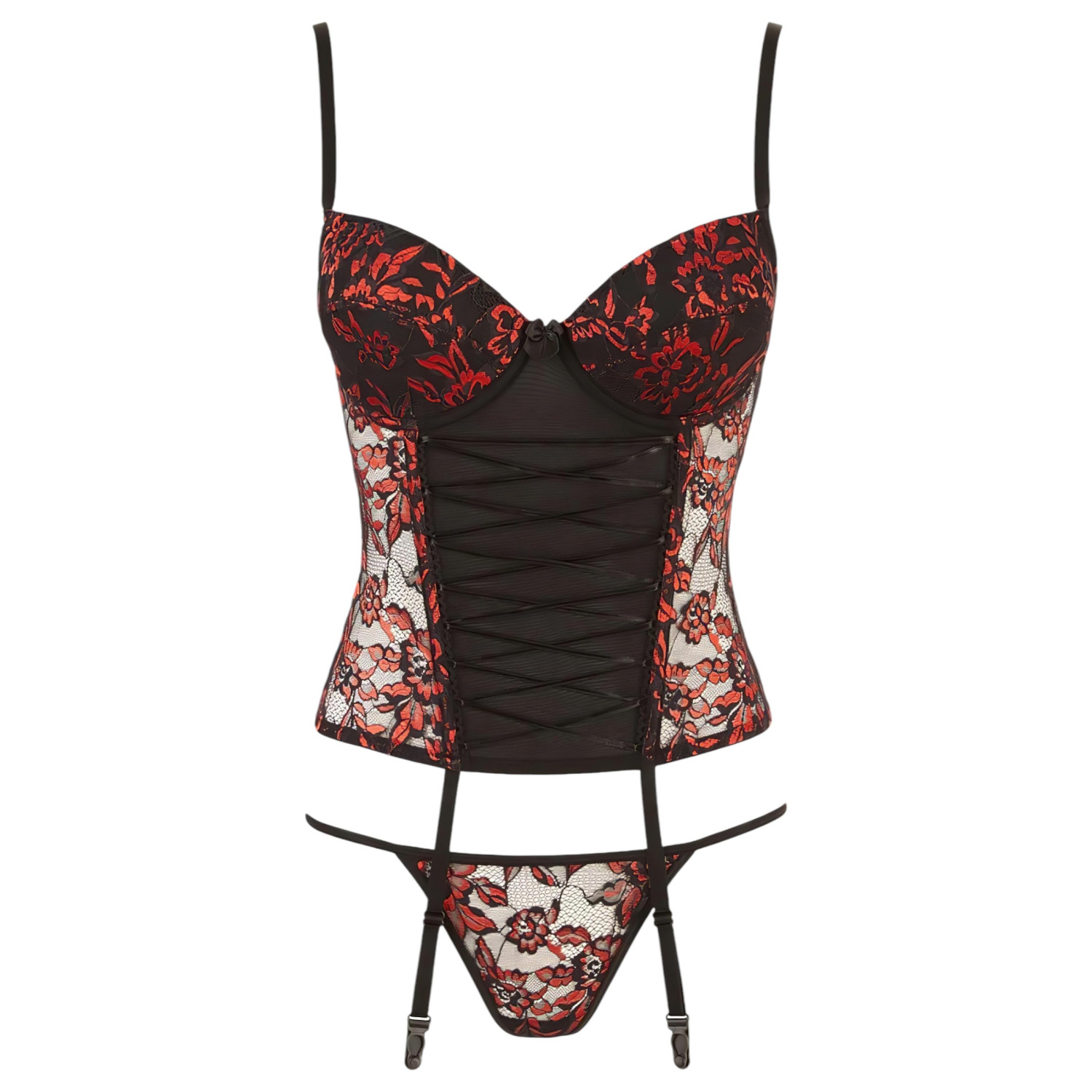 Cottelli - Roosiline korsett ning stringid (punane) - 80B/M
