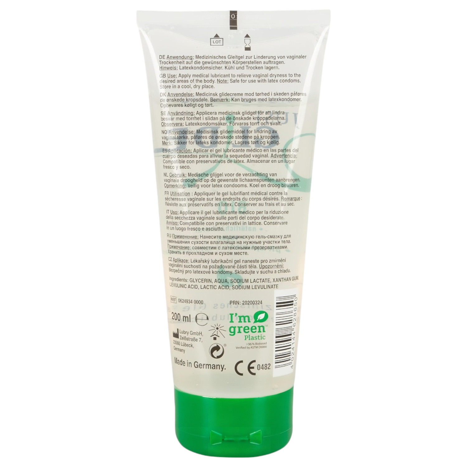 Glycerin, Aqua, Sodium Lactate, Lactic Acid, Xanthan Gum, Levulinic Acid, Sodium Levulinate