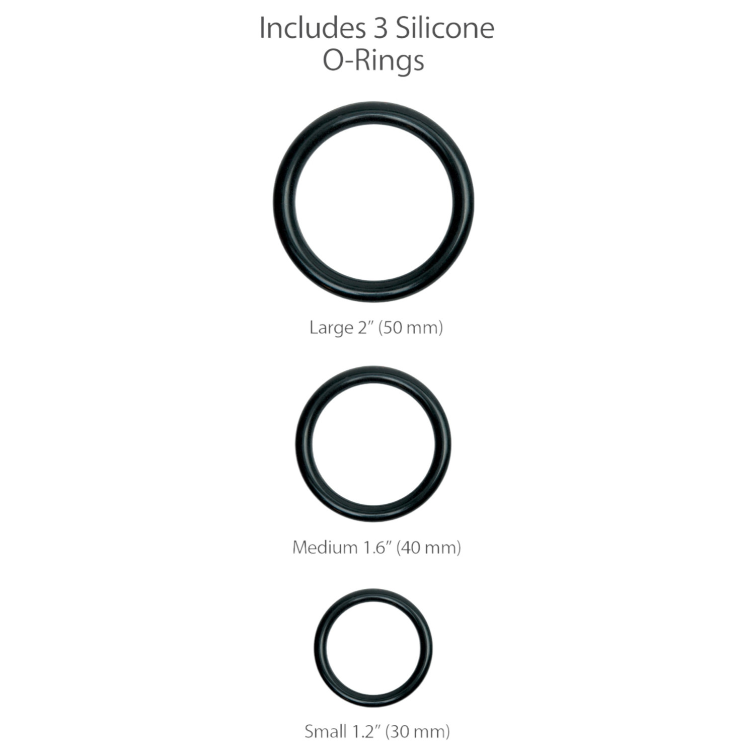 • Kolm eri suuruses kinnitusrõngast - saad kasutada ka teisi dildosid või vibraatoreid koos traksiga.