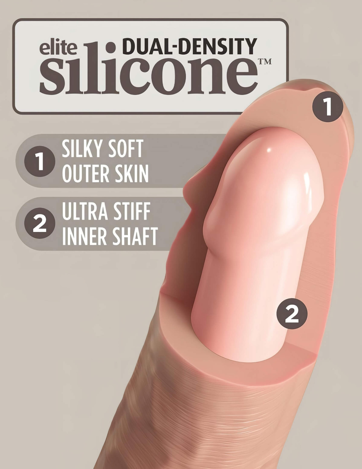 Tänu oma ainulaadsele kahekihilisele disainile annab sisemine silikoonikiht tootele mõnusa jäikuse - nii kõva nagu päris -, samal ajal kui välimine, eriti pehme silikoon katab selle sametiselt pehme puudutusega, täpselt nagu silitaksid päris peenist!