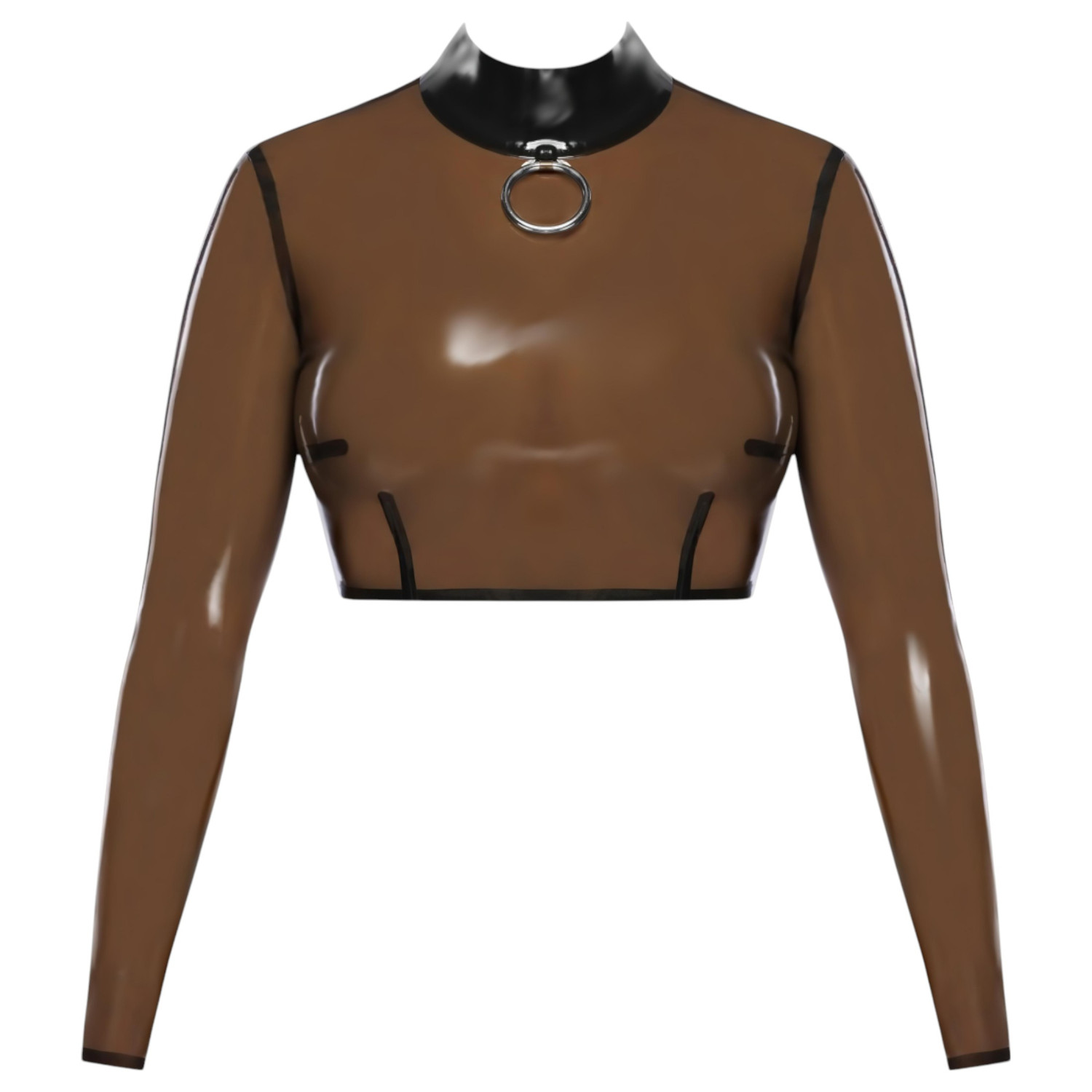 • 1 läbipaistev, pikkade varrukatega lateks crop top metallrõngaga kaeluses