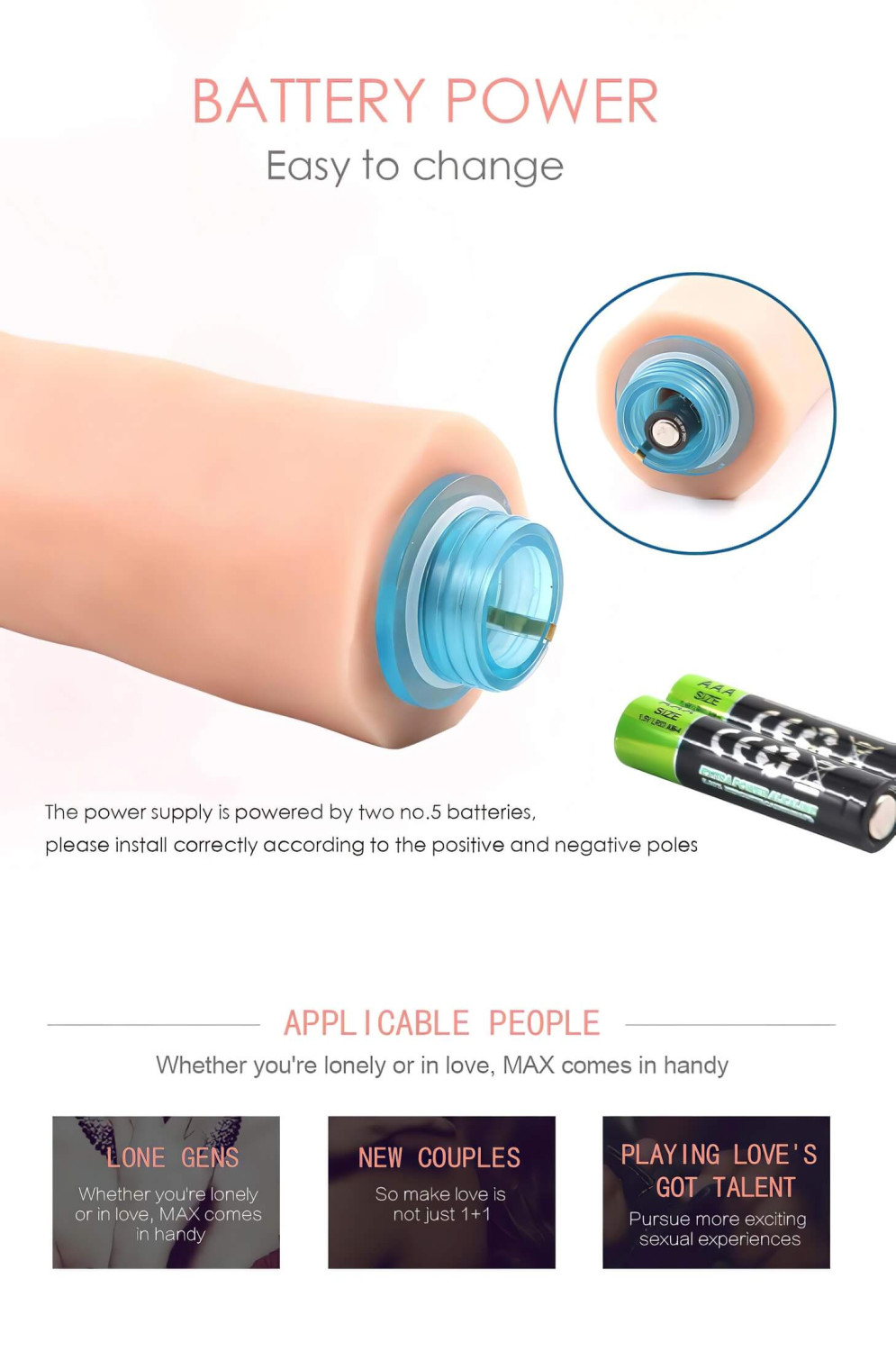 Keera lahti (sinine) patareikate vibraatori otsas ja pane sisse 2 AAA patareid. Keera kate tagasi ja keera vibraatori põhjas olevat nuppu - juba töötavagi vibratsioon.