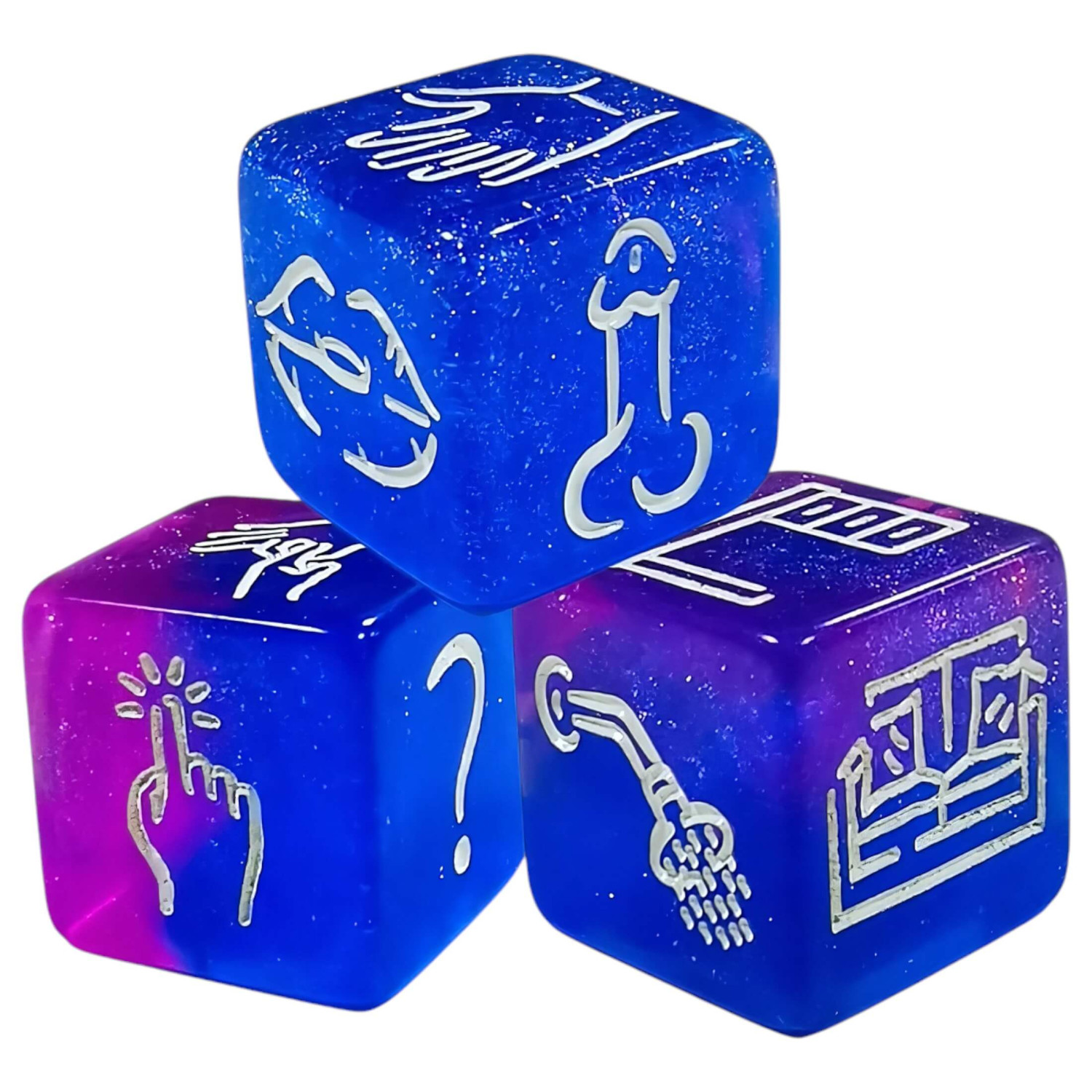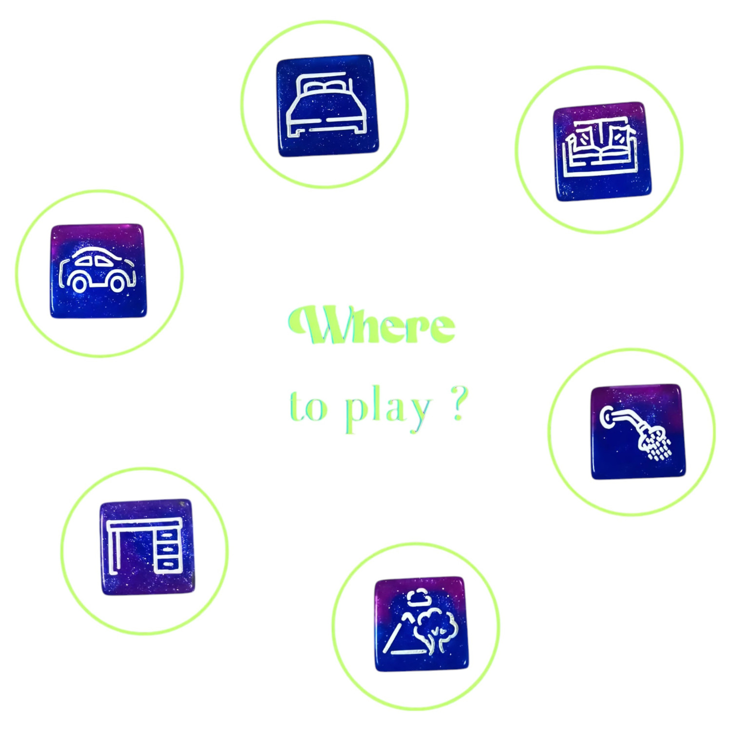 • Kolm erinevat täringut: Üks määrab tegevuse, teine kehaosa, kolmas koha - sadu erinevaid kombinatsioone!