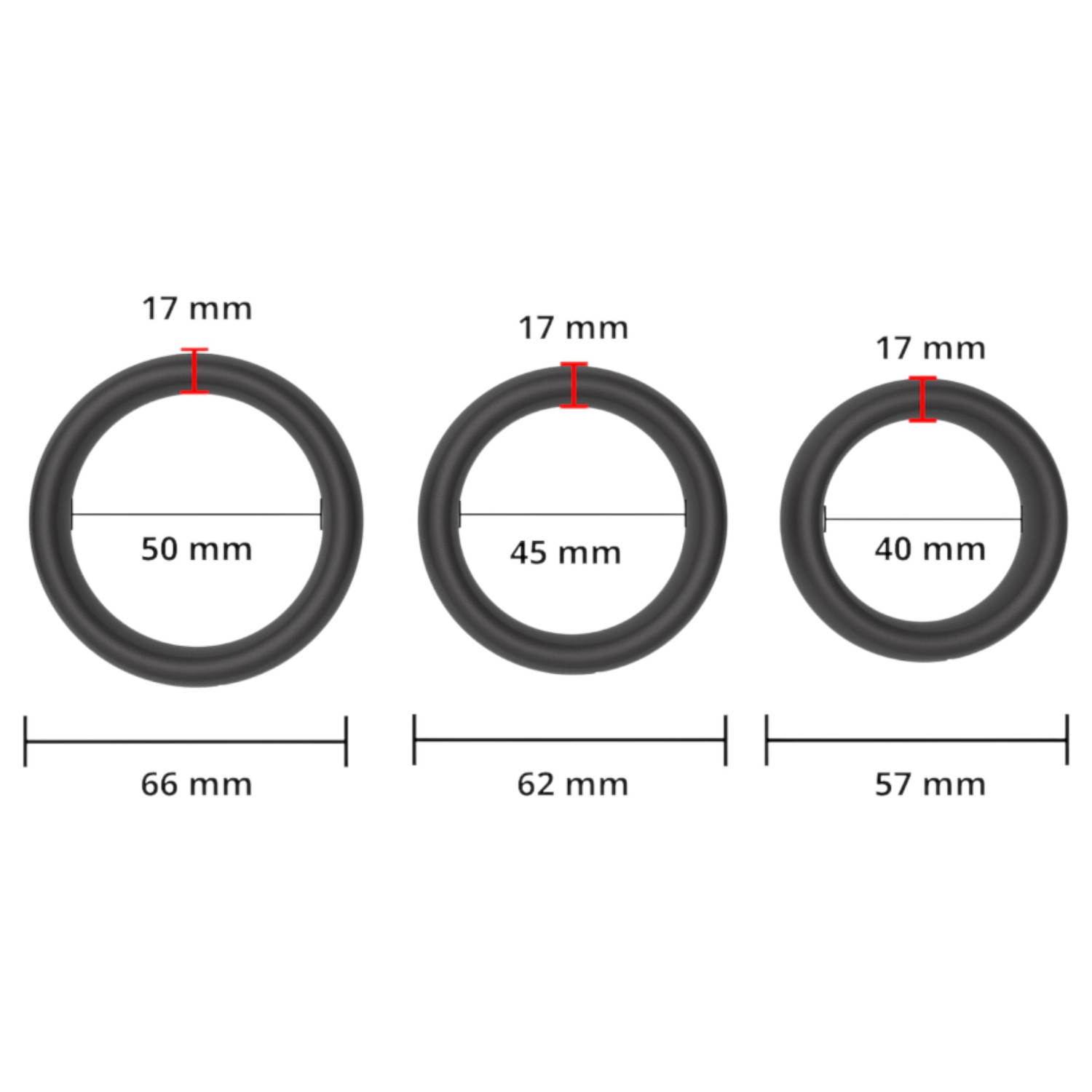 See premium kvaliteediga paksude peeniserõngaste komplekt on ideaalne valik meestele, kes soovivad tugevamat ja pikemat erektsiooni, samal ajal suurendades naudingut nii endale kui partnerile. Kolm erinevat suurust võimaldavad personaalset sobivust ja paks silikoon tagab veelgi tugevama hoidmise.