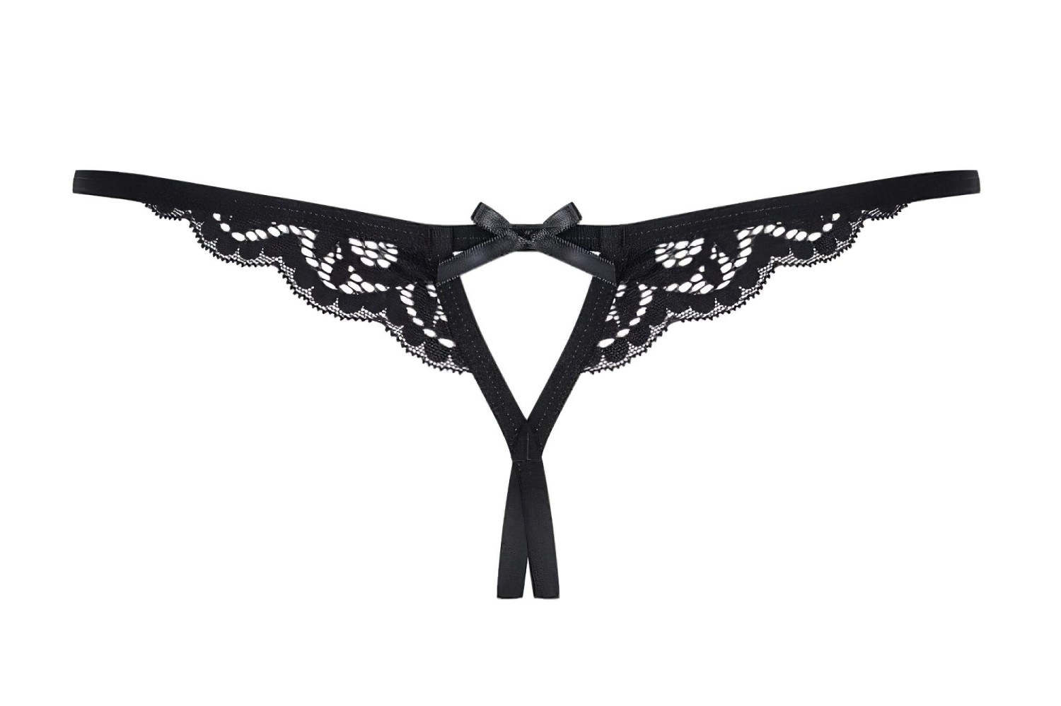 Arvamused Obsessive 831-THC-1 - väikese lipsukesega avatud pitsiline string (must)
