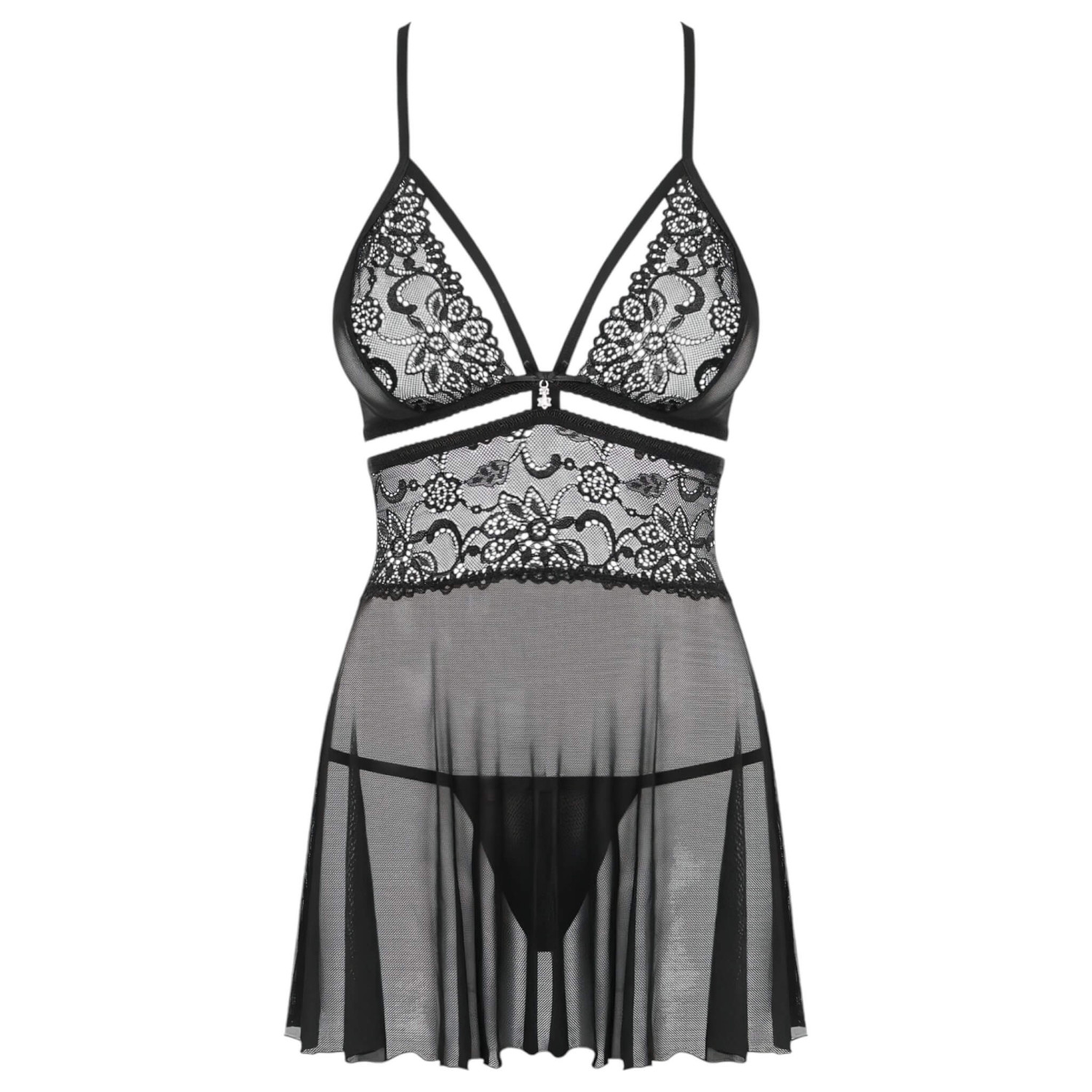 Obsessive 838-BAB-1 - läbipaistev pitsist babydoll komplekt (must) - L/XL