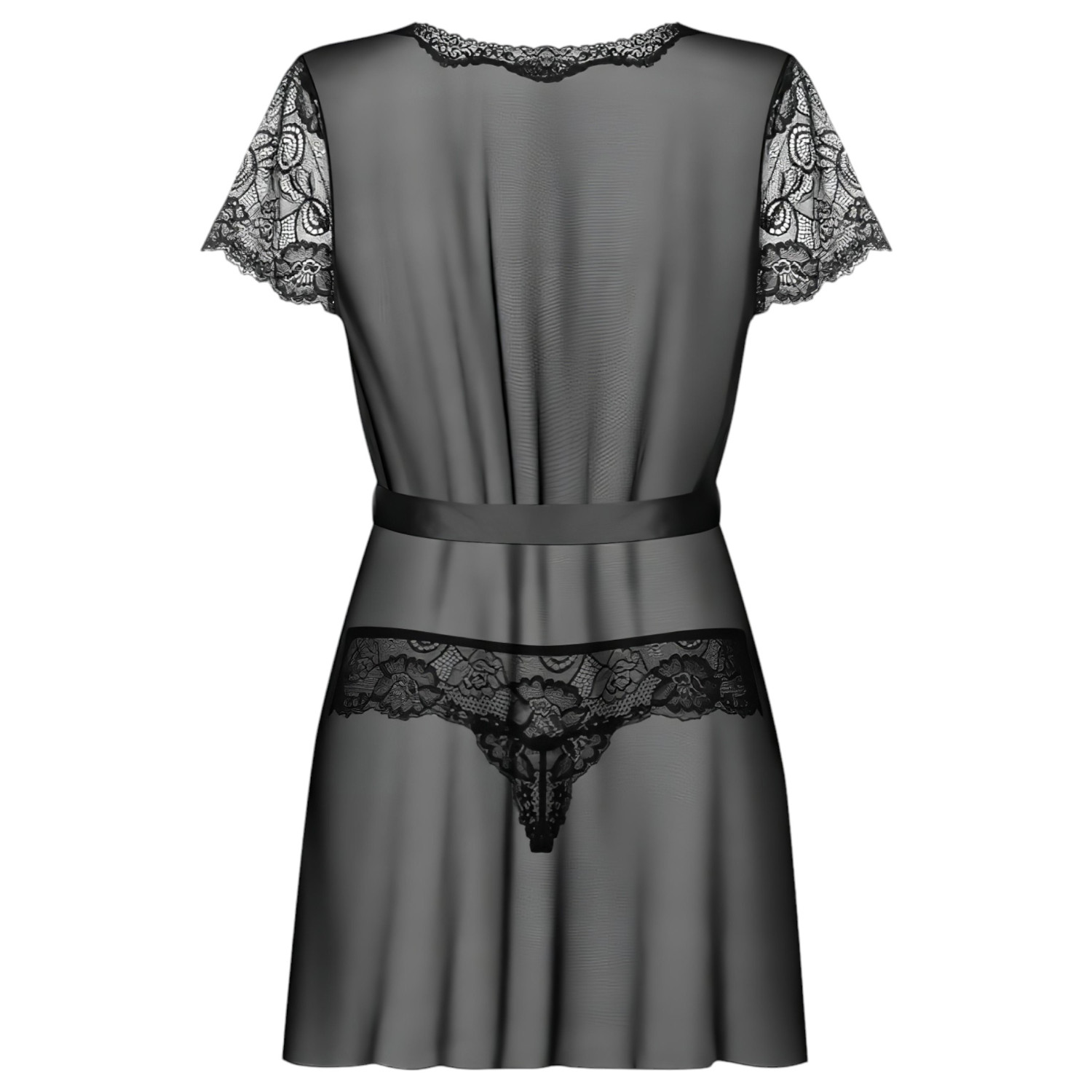 Obsessive Alluria - pitsist hommikumantel ja stringid (must)
