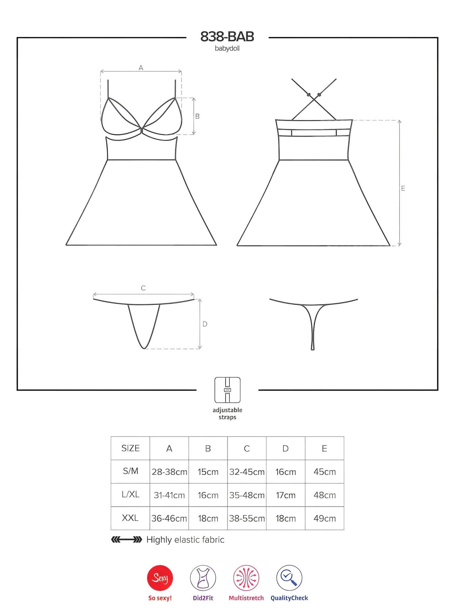 Arvamused Obsessive 838-BAB-1 - läbipaistev pitsist babydoll komplekt (must) - 2XL/3XL