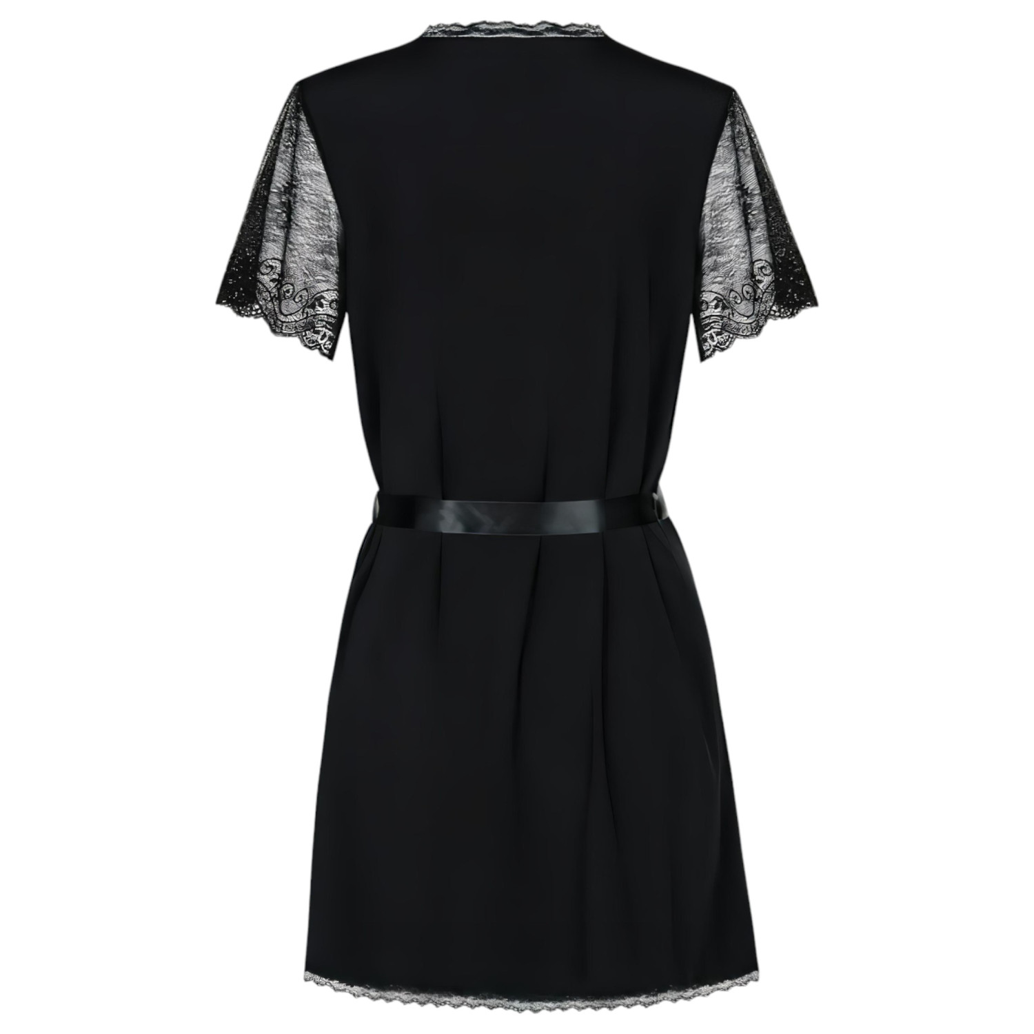 Obsessive Miamor hommikumantel - pitsist varrukatega hommikumantel stringidega (must)
