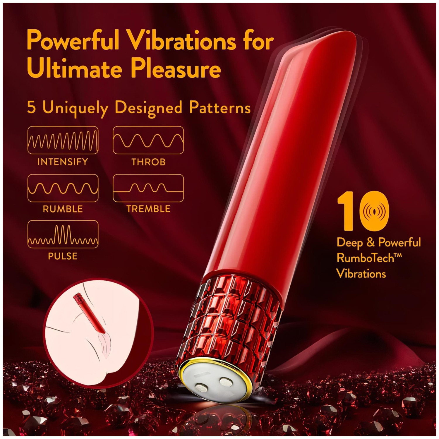 Oh My Gem Desire ei ole ainult luksusliku välimusega vibraator, vaid ka elamust suurendav kaaslane, mis hellitab RumboTech™ mootori võimsusega ja 10 erineva vibratsioonirežiimiga. Tänu oma kompaktsusele saad selle igale poole kaasa võtta ning veekindluse tõttu nautida isegi vannis. Soojendusfunktsioon pakub veelgi intiimsemaid hetki, samas kui kehasõbralikud materjalid tagavad maksimaalse mugavuse ja turvalisuse.