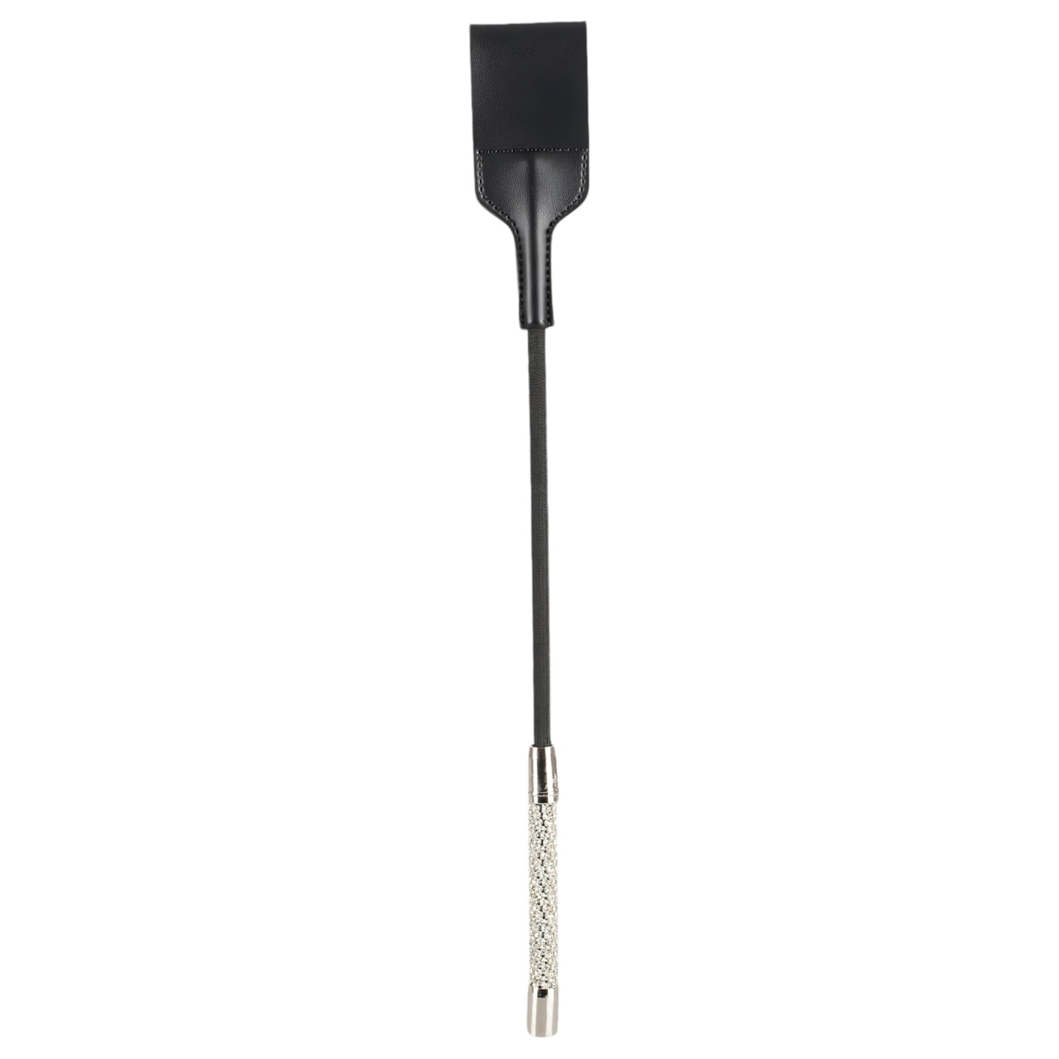 Tõeliselt tugeva, teravama tunnetuse jaoks valmistatud, kahekordsest nahast valmistatud plätser, mille käepide on kõikjal kaetud valgete, säravate strassidega - nagu ehtne ehe.