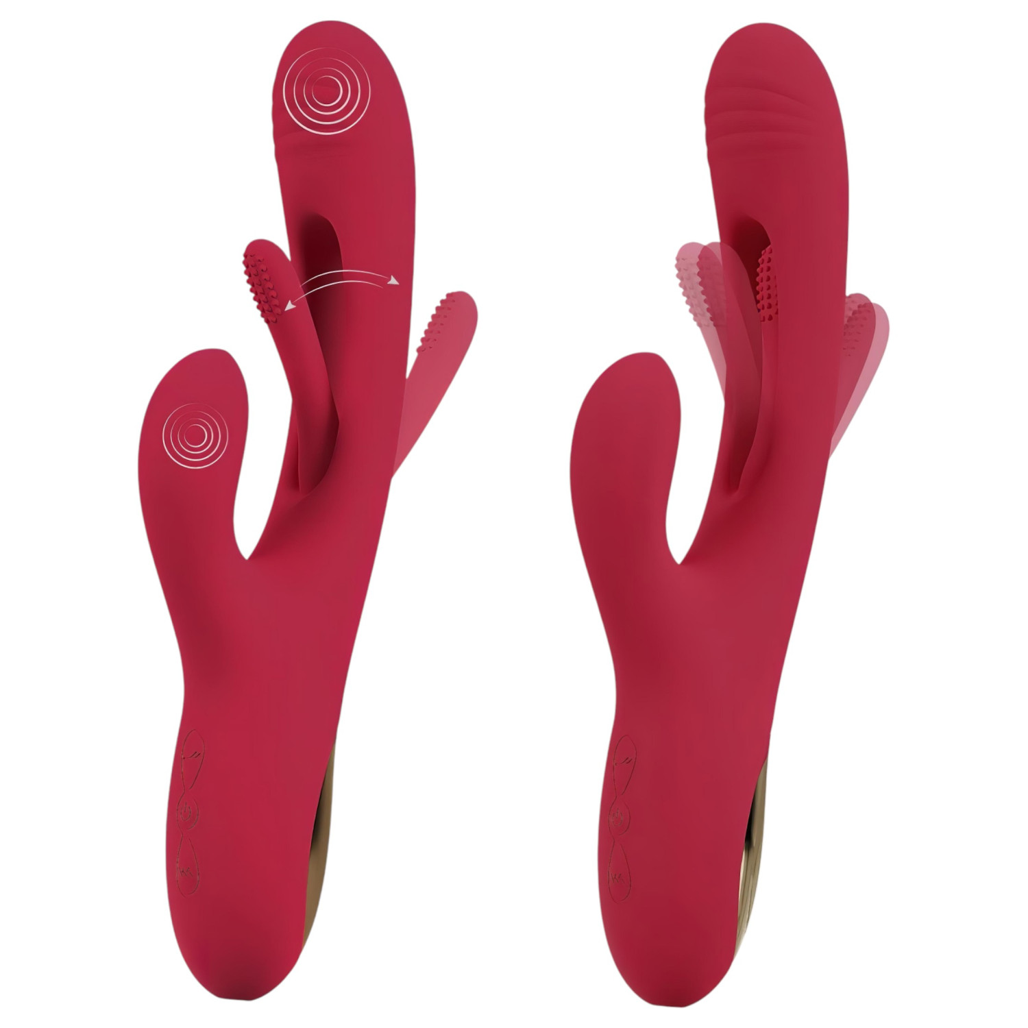 Keskmist (power) nuppu all hoides lülitad seadme sisse või välja. Kui veel vajutad, saad G-punkti varre vibratsioone vahetada. Alumise (lainelise) nupuga juhid kliitorikaare vibratsioone. Ülemise nupuga saad liikuva keele tööd reguleerida.