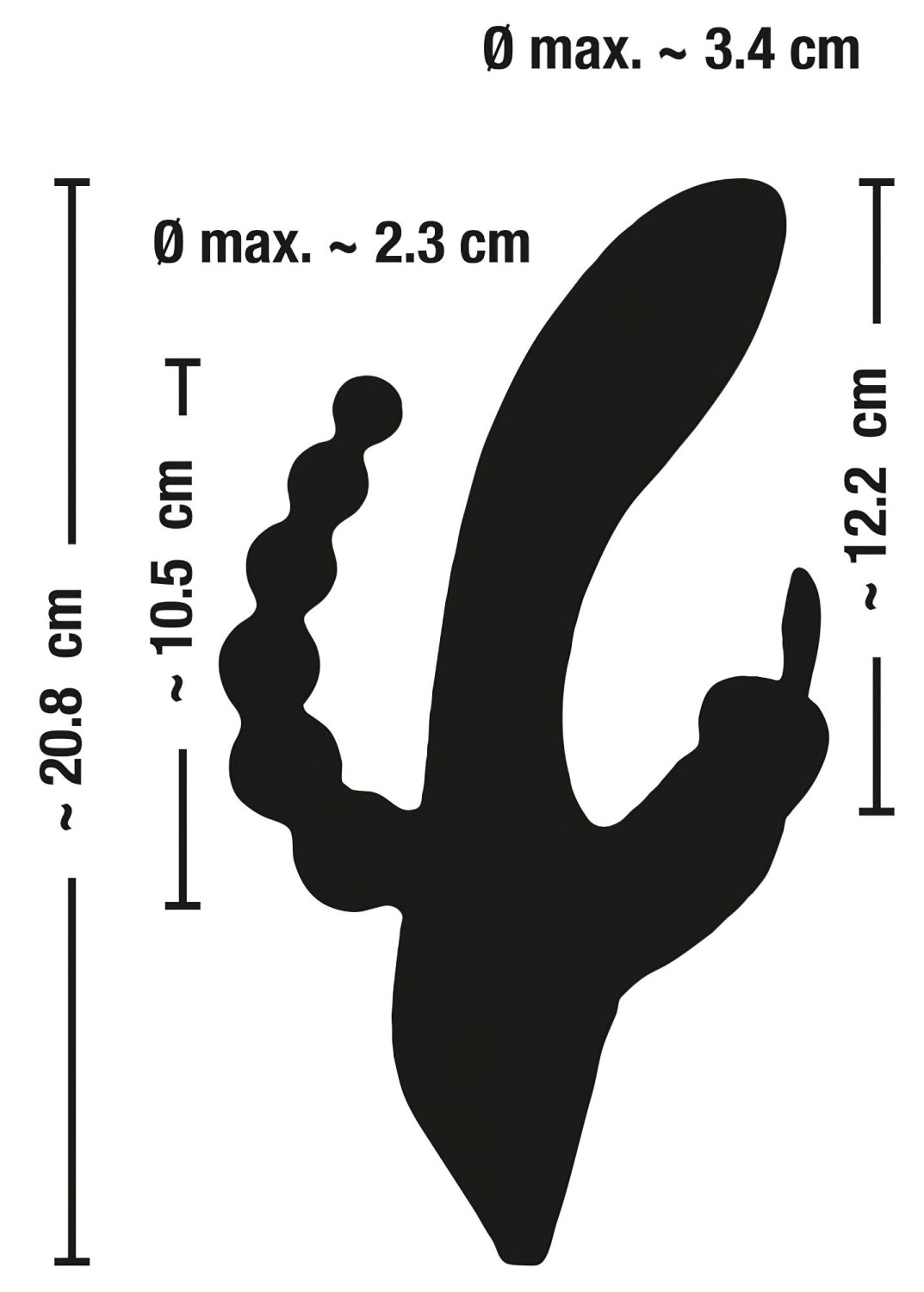 • Jänkukujuline kliitorivibraatori haru ja kuulidega anaalseltimuleeriv osa - järgib kenasti keha kuju