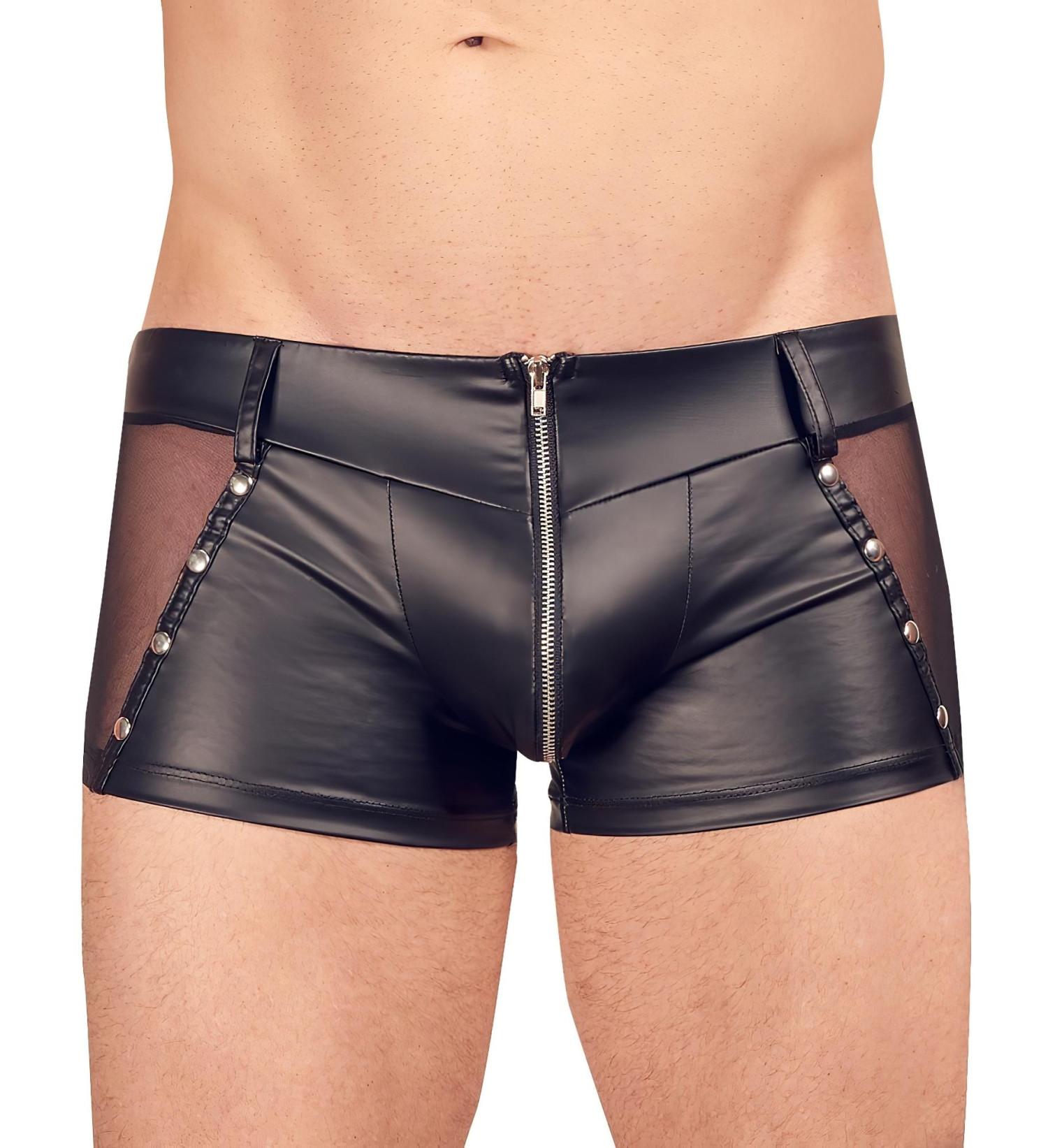 Ekstreemselt seksikas, neetidega ja poolläbipaistvate detailidega meeste bokserid, mis sobivad suurepäraselt ka vallatuks lühikeseks püksiks!