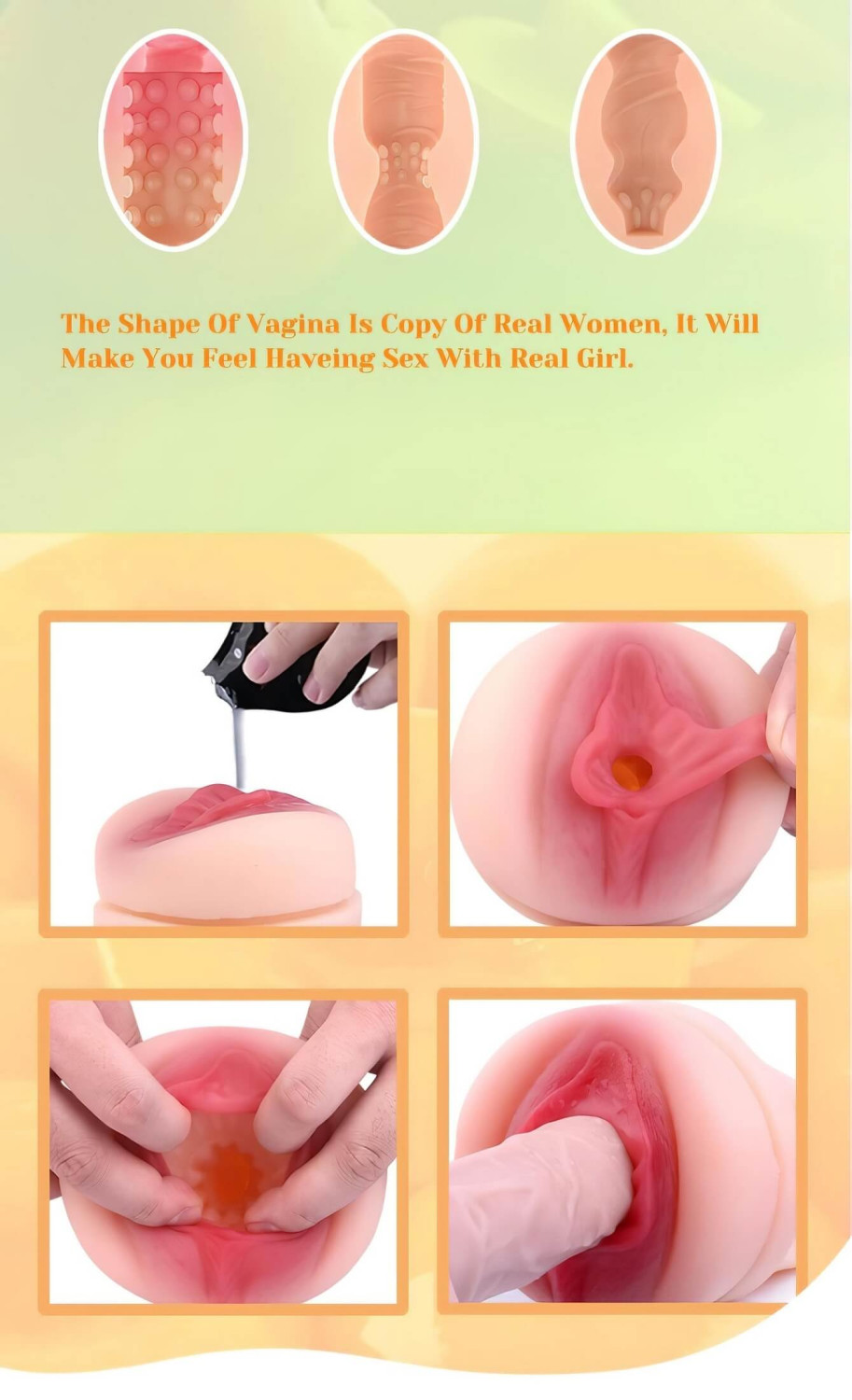 • Elutruu materjal muudab läbistamise lihtsaks. Puudutus on pehme, sisemus elutruu tupepinnaga: alguses nauditavalt täpiline, siis kitsam, rohkem survet andes, seejärel jälle lõdvestub ja kitseneb uuesti.