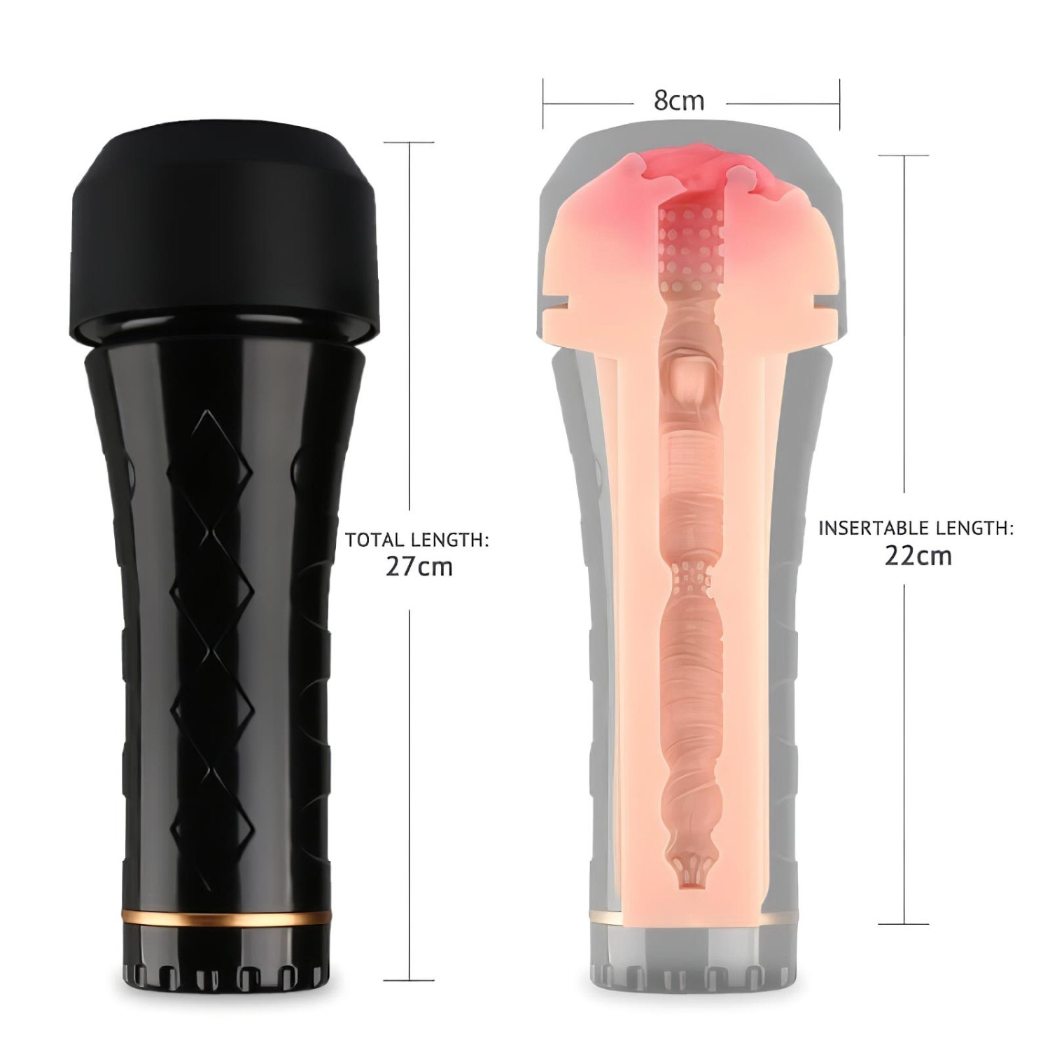 • Sisemine pehme tupp on lihtsasti eemaldatav (kest mõlemalt poolt lahti keeratav) ja veelgi autentsema kogemuse jaoks võib seda enne kasutamist sooja vee all üles soojendada.