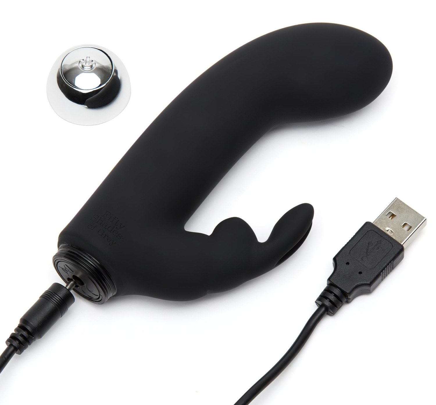 Vibraatori USB-laadimispesa ilmub pärast hõbedase osa lahti keeramist. Laadimiseks vajalik USB-kaabel on komplektis.