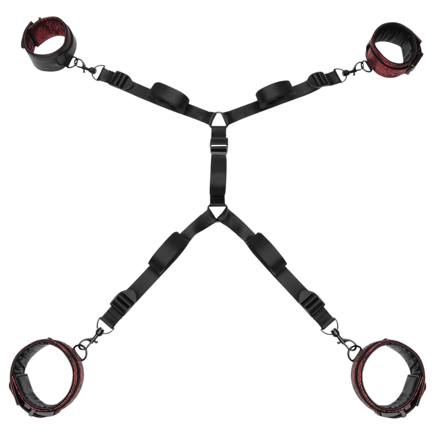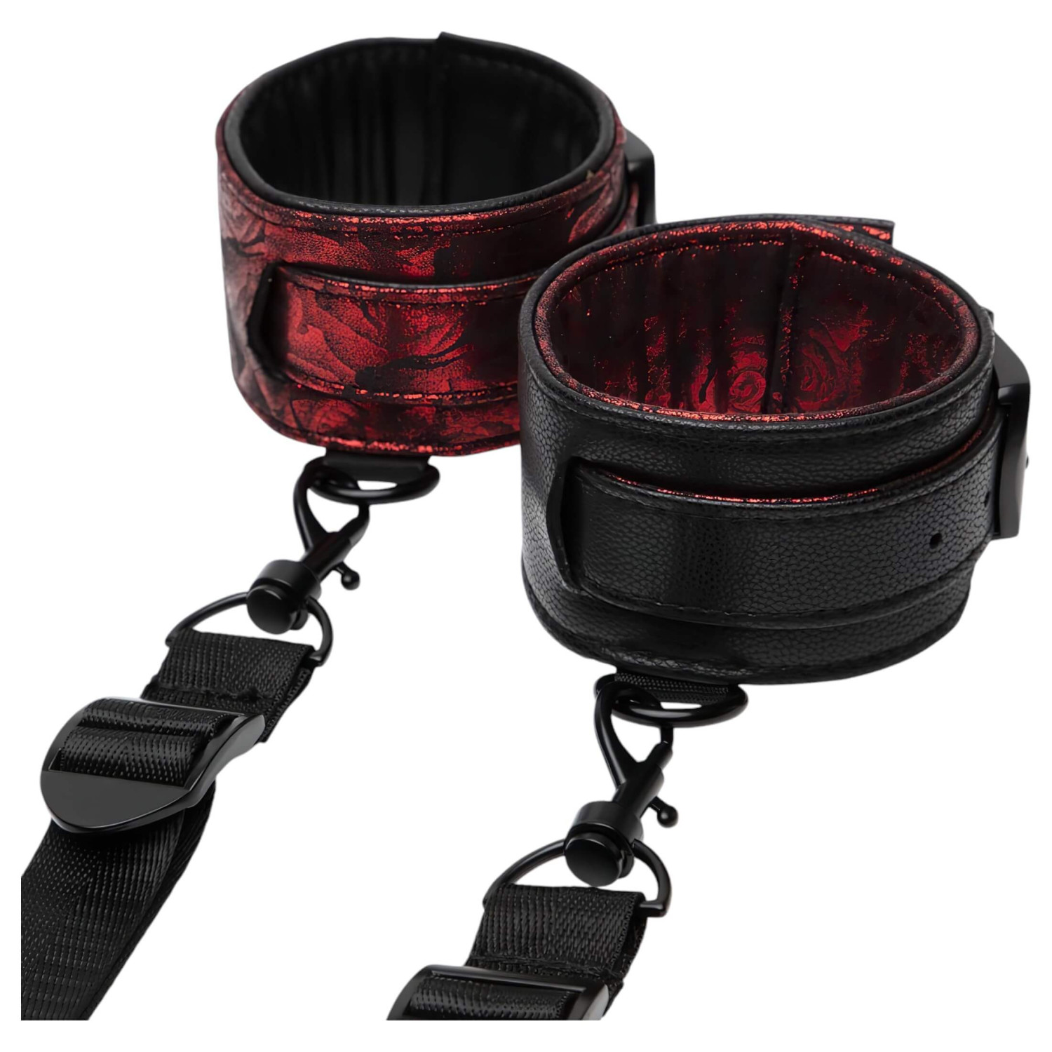 Võrgutav, punase satiiniga kaetud käeraudade komplekt, kui tahad oma kallimat täielikult kinni siduda!