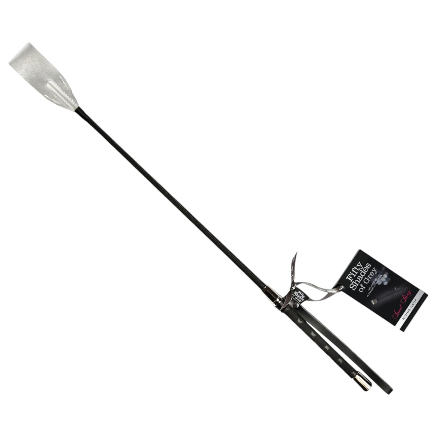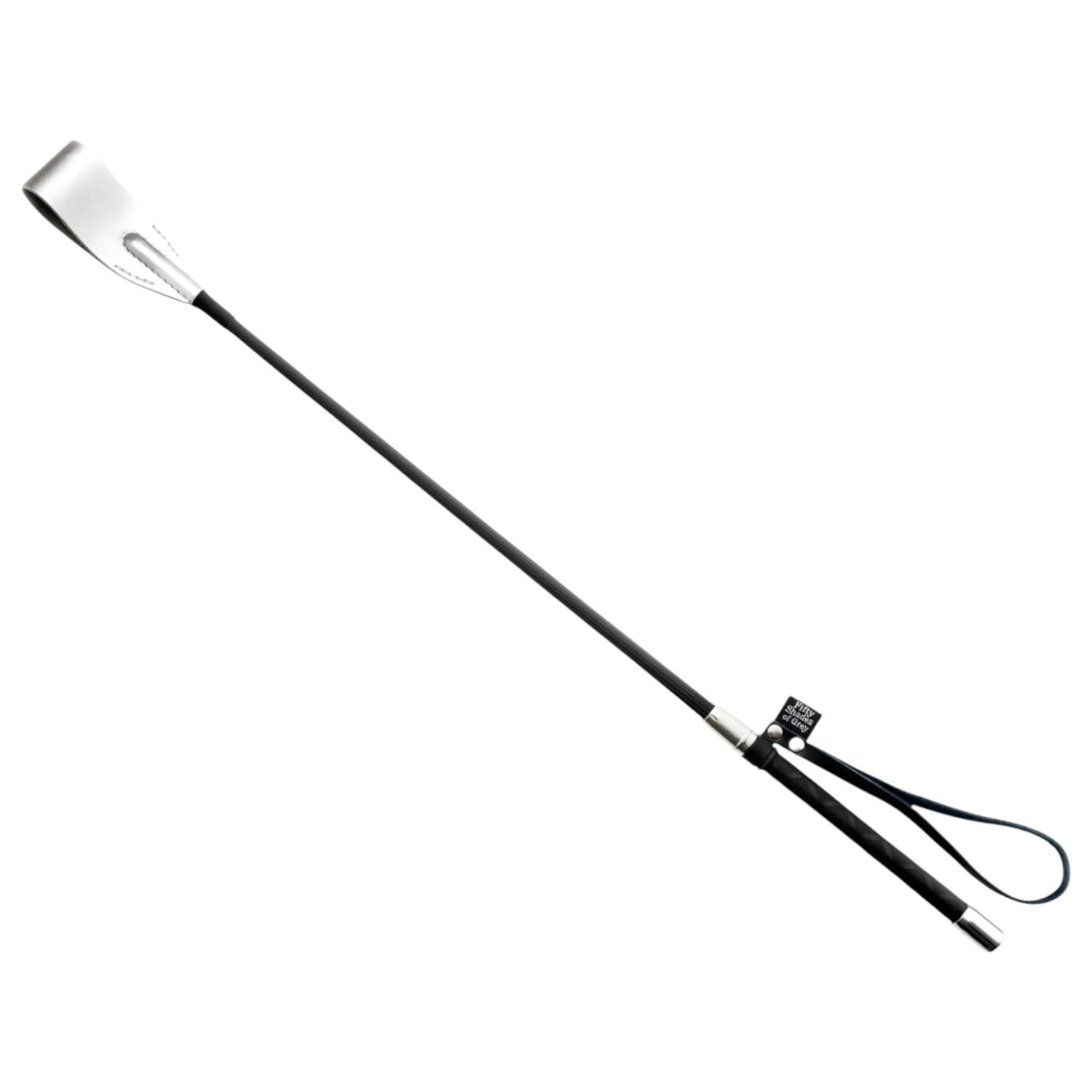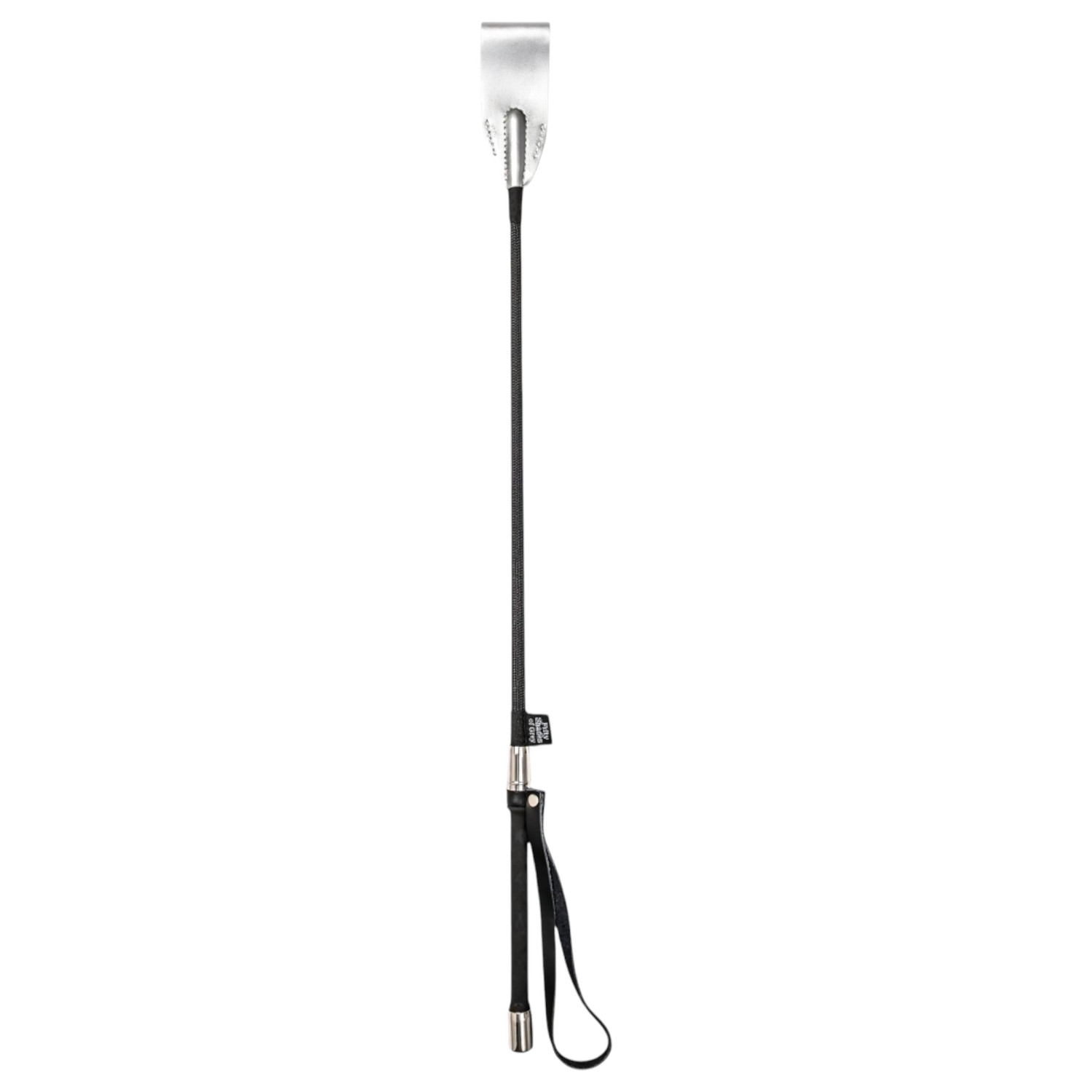 Eksklusiivne disainiga piits, valmistatud kvaliteetsest mustast nahast, vastupidava käepidemega. Vürtsikalt magusate naudingute jaoks! Otsas läikiv, hõbedane viimistlus. Praktiline randmepael kindla haarde jaoks.