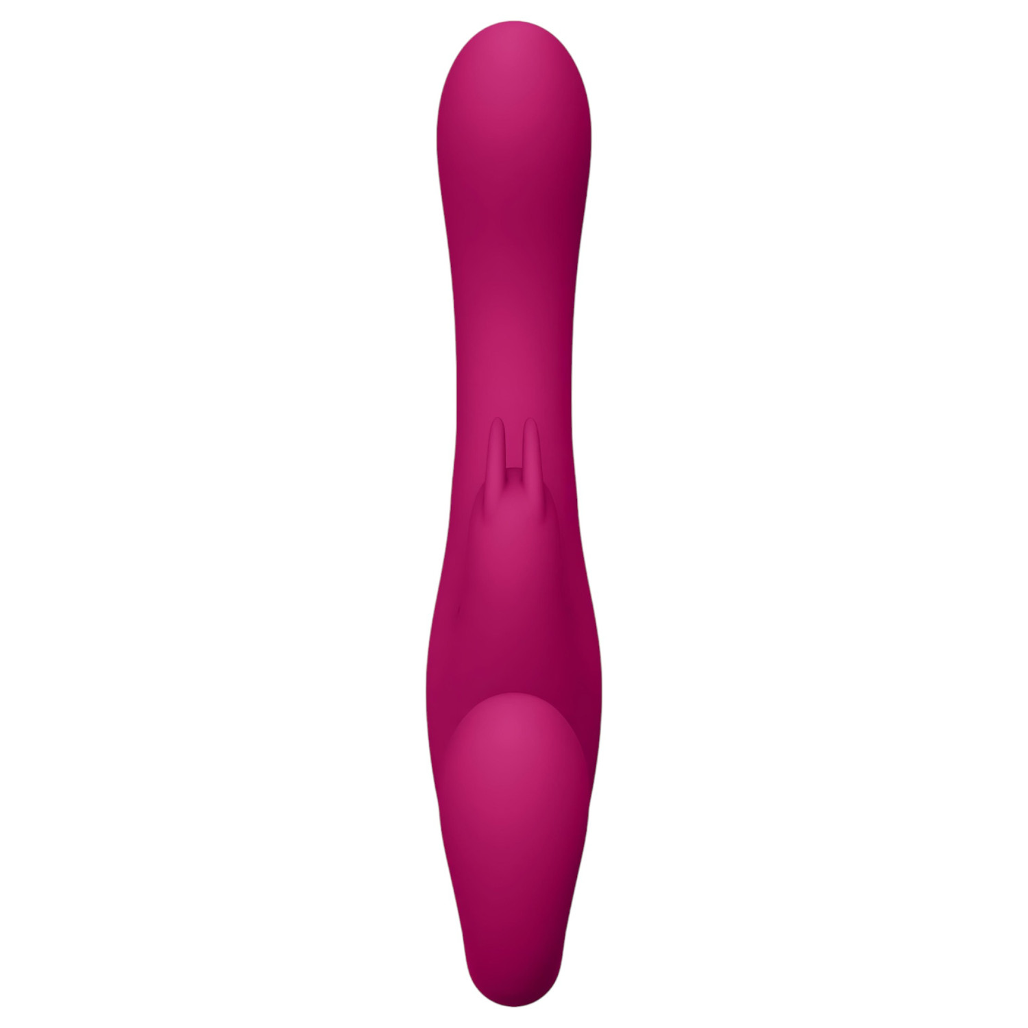 • Unikaalne lahendus - G-punkti, jänkukõrvadega kliitoristimulaator ja rihmadeta strap-on vibraator kõik ühes seadmes!