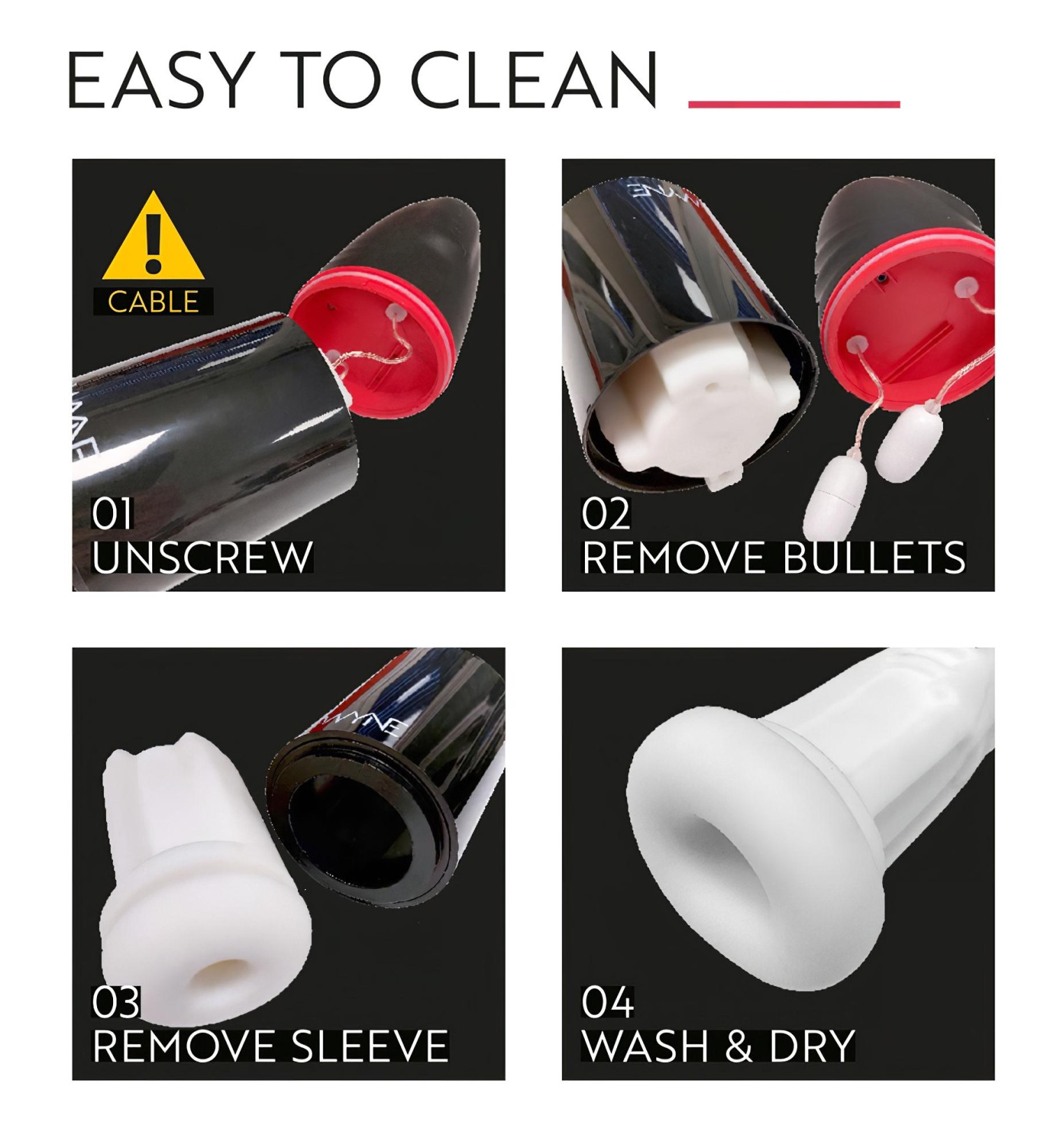 Enne kui hakkad kasutama, määri libestit nii peenisele kui ka pehmele sisendile, siis lükka kõva peenis sügavale masturbaatorisse. Lülita mugavalt sisse meelepärased programmid ja naudi vibra ning imemist.