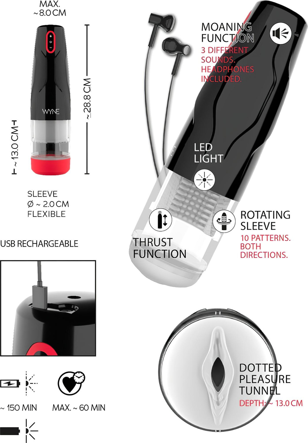 WYNE 05 - laetav pöörlev masturbaator (must-valge)
