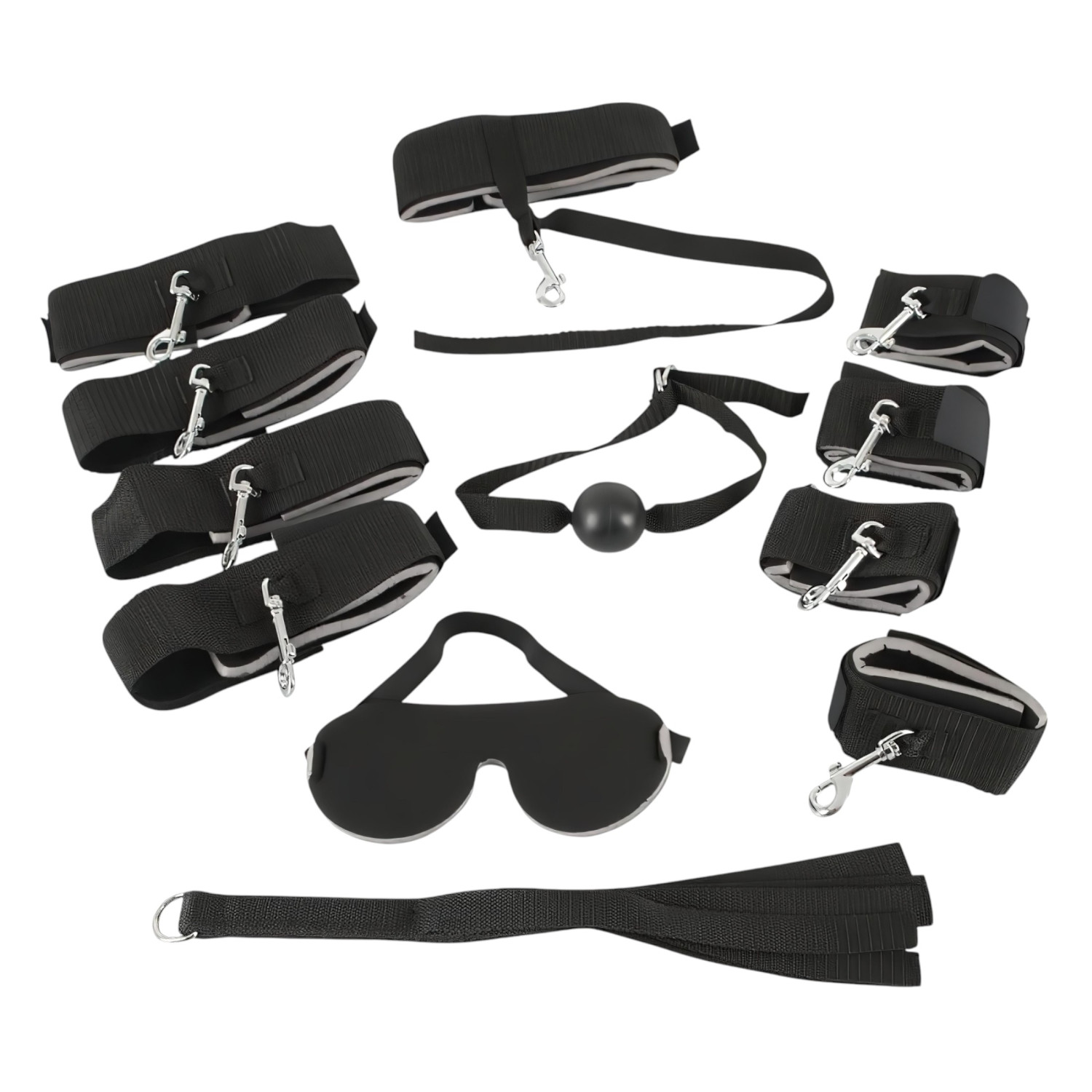 Ava polsterdatud lamamispind ja aseta see voodile, põrandale või stabiilsele pinnale. 9 metallist D-rõngast võimaldavad käe- ja jalarihmade, kaelarihma ning rihma kinnitamist täpselt soovitud positsioonis. Kaasa tuleva piitsaga saad mängu veelgi vürtsitada. Komplekti kõiki osi saad täiesti oma fantaasia järgi kombineerida - ainult kujutlusvõime seab piiri!