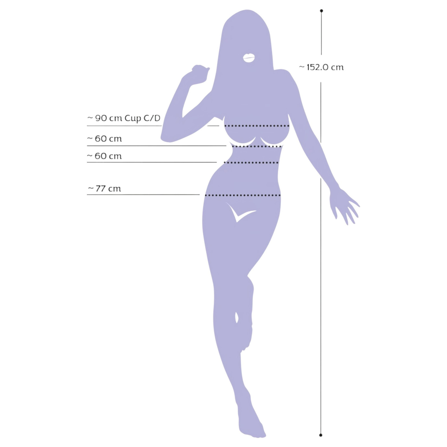 • Avad: suu (sügavus: 9 cm, läbimõõt: 4 cm), vagiina (sügavus: 11 cm, läbimõõt: 4 cm), anaal (sügavus: 13 cm, läbimõõt: 4 cm)
