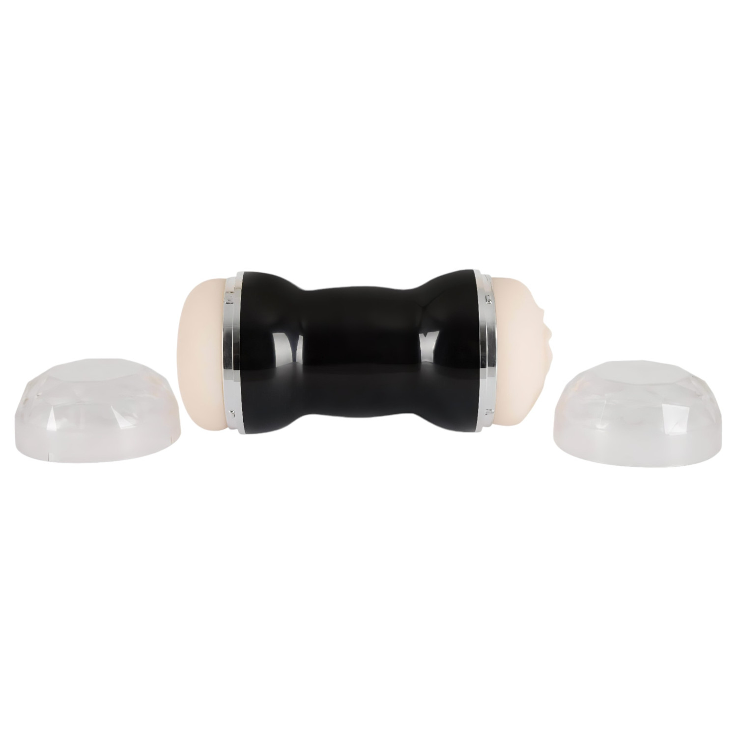 • 1 tk kahe avaga masturbaatorit musta-hõbedase kestaga