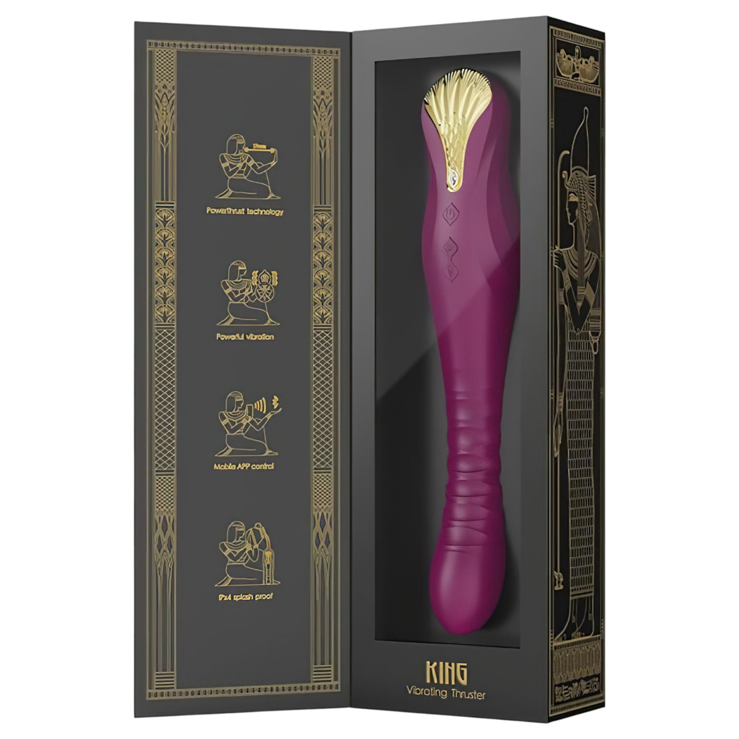 ZALO King on premium-kategooria vibraatorite kroonimata kuningas. Ta ühendab vibratsiooni ja tõukefunktsiooni naudingu, elegantse, luksusliku disaini ja erakordse jõudlusega. Ainulaadsed tipptasemel mootorid tagavad intensiivse, kuid vaikse töö, pehme silikoonkate aga pakub siidist puudutust. ZALO rakendusega juhitav, nii et nauding on sõna otseses mõttes sinu (või partneri) kätes.